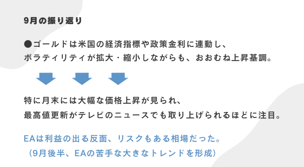 特に9月後半、EAの苦手な大きなトレンドを形成しました。