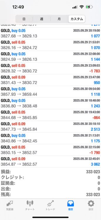 100万円運用で+333,023円、月利+33.3%でした。